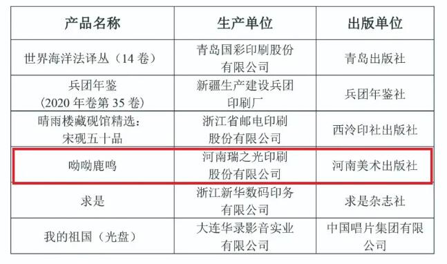 近日,從第五屆中國出版政府獎(jiǎng)評(píng)選工作領(lǐng)導(dǎo)小組辦公室獲悉,由河南瑞之光印刷股份有限公司印制,河南美術(shù)出版社出版的《呦呦鹿鳴榮獲中國出版政府獎(jiǎng)提名獎(jiǎng)(印刷復(fù)制類)。