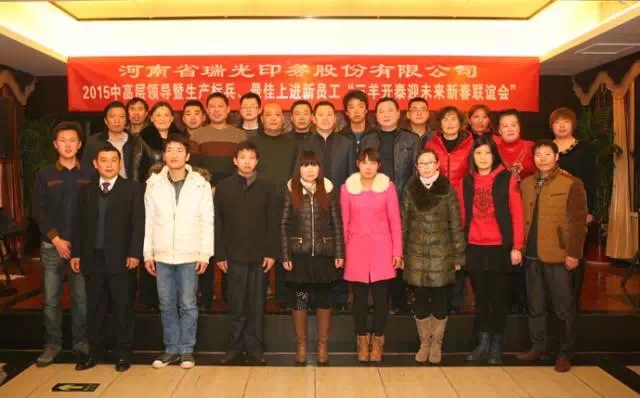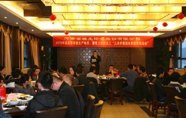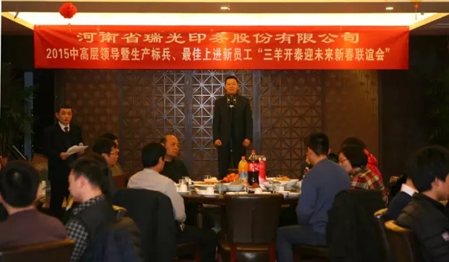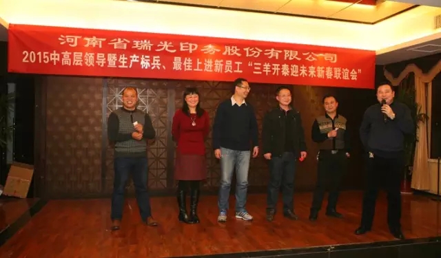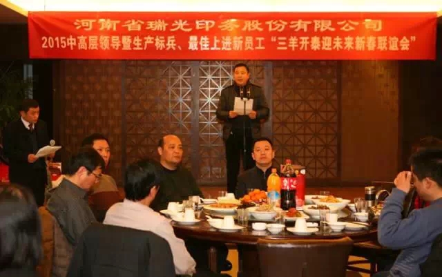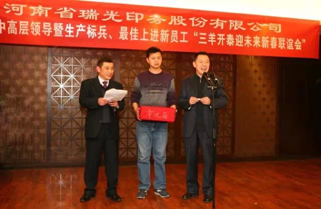 2015年3月4日下午18:00, 河南省瑞光印務(wù)股份有限公司舉行2015中高層領(lǐng)導(dǎo)暨生產(chǎn)標(biāo)兵、最佳上進(jìn)新員工“三羊開泰迎未來新春聯(lián)誼會(huì)”。總部領(lǐng)導(dǎo)、瑞光印務(wù)公司中高層、2014年度生產(chǎn)標(biāo)兵和最佳上進(jìn)新員工參加了聯(lián)誼會(huì)。