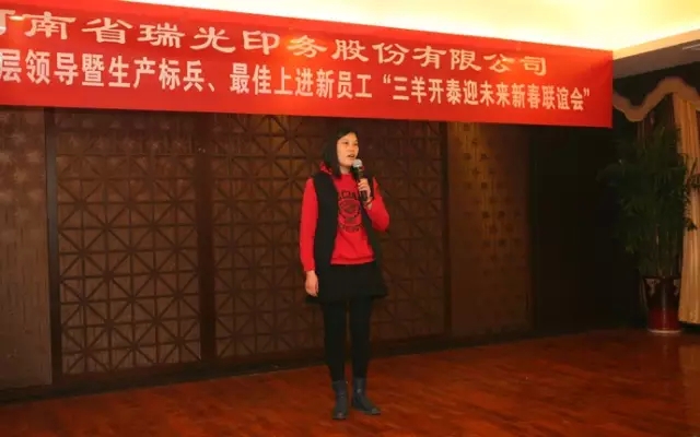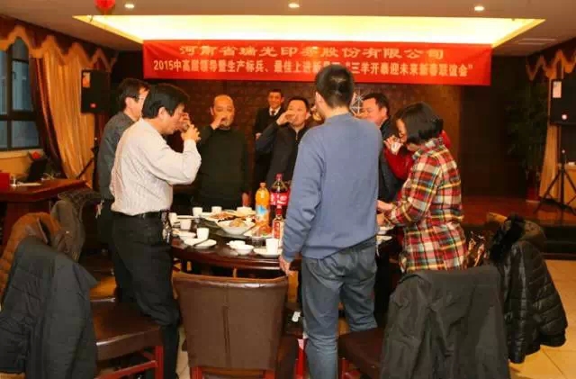 聯(lián)誼會(huì)上,瑞光印務(wù)總經(jīng)理王在東先生致辭,瑞光公司總部董事長(zhǎng)張歌偉先生致祝酒詞。各部門中層干部說出對(duì)公司的祝福語,祝愿瑞光明天更美好,部分參會(huì)人員登臺(tái)表演節(jié)目,聯(lián)誼會(huì)由瑞光印務(wù)副總經(jīng)理于紅喜先生主持。