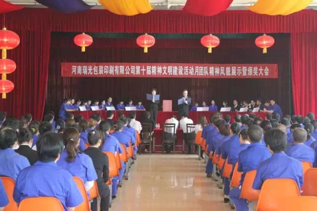 河南瑞光包裝印刷有限公司也同期舉辦了精神文明建設(shè)活動(dòng)月團(tuán)隊(duì)精神風(fēng)貌展示暨頒獎(jiǎng)大會(huì)。
