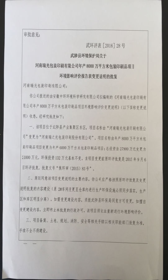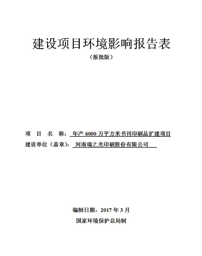 河南瑞之光印刷股份有限公司年產(chǎn)6000萬平方米書刊印刷品擴(kuò)建項(xiàng)目縣批報(bào)告表