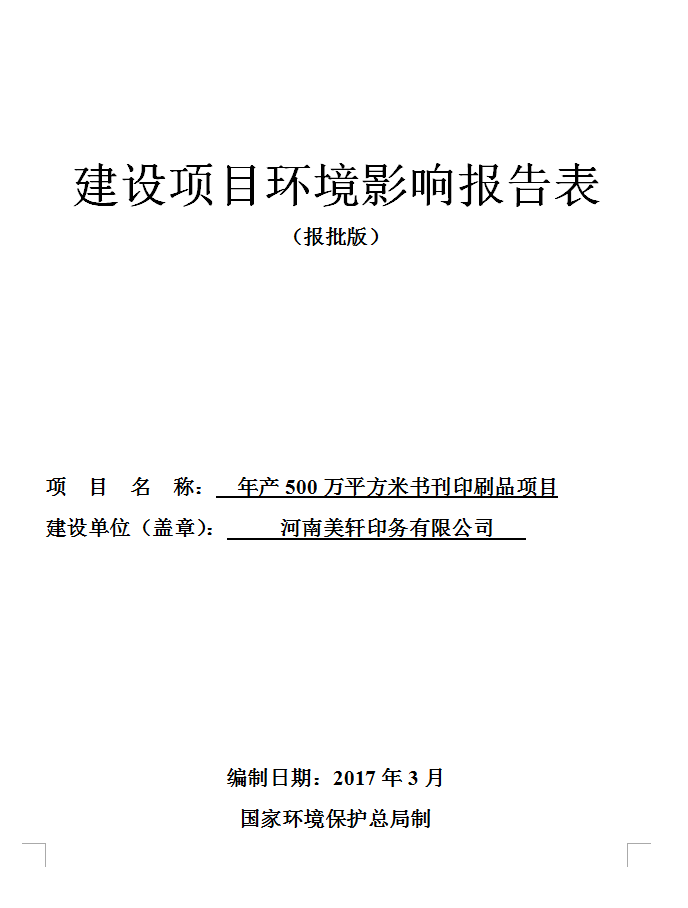 河南美軒印務(wù)有限公司年產(chǎn)500萬平方米書刊印刷品項(xiàng)目