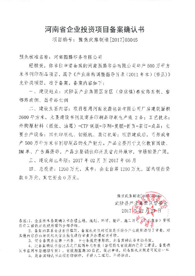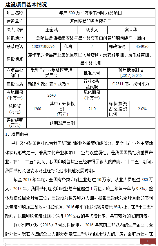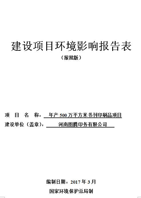 河南圖騰印務有限公司年產(chǎn)500萬平方米書刊印刷品項目