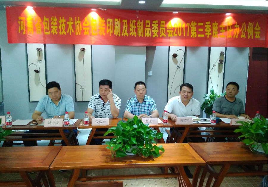 2017年8月12日,河南省包裝技術(shù)協(xié)會包裝印刷及紙制品委員會2017第三季度主任辦公例會在鄭東瑞光文化產(chǎn)業(yè)園三樓會議室召開,河南省包協(xié)副會長、包裝印刷委員會主任張歌偉,河南省包協(xié)副會長、紙制品委員會主任代建設(shè),河南省包協(xié)秘書長李武軍及副秘書長、副主任等40余人參加了會議。