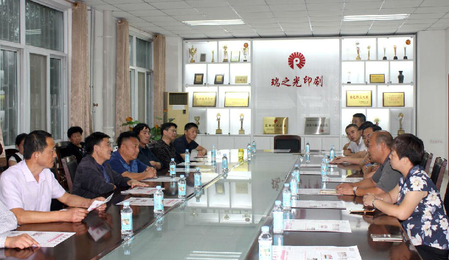 隨后,雙方在公司會(huì)議室進(jìn)行了座談。座談會(huì)上,雙方領(lǐng)導(dǎo)就目前印刷包裝行業(yè)的現(xiàn)狀、面臨的問題和困難以及今后的發(fā)展形勢(shì)、方向和動(dòng)態(tài)等事項(xiàng)進(jìn)行了深入的交流。最后,李會(huì)長(zhǎng)對(duì)瑞之光印刷公司的熱情接待表示了衷心的感謝!