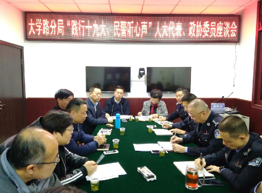 11月8日上午,張歌偉總裁受鄭州市公安局大學(xué)路分局邀請(qǐng),與部分人大代表、政協(xié)委員一起參加大學(xué)路分局“踐行十九大,民警聽心聲”人大代表、政協(xié)委員座談會(huì),大學(xué)路分局局長(zhǎng)田亞杰、副局長(zhǎng)王軍等領(lǐng)導(dǎo)班子成員參加會(huì)議,分局領(lǐng)導(dǎo)向各位代表和委員匯報(bào)了警務(wù)工作的開展情況,與會(huì)代表和委員肯定了大學(xué)路分局的工作,認(rèn)為鄭州市治安狀況持續(xù)改善,市民滿意度不斷提升,同時(shí)也就人民群眾關(guān)心的打擊犯罪、改善交通等熱點(diǎn)問題提出了意見和建議,分局領(lǐng)導(dǎo)與代表和委員進(jìn)行了解釋、溝通并認(rèn)真記錄,現(xiàn)場(chǎng)將部分改進(jìn)措施進(jìn)行安排落實(shí),最后,田亞杰局長(zhǎng)向與會(huì)代表和委員表示感謝,表示將克服困難,加大執(zhí)法力度,為打造平安鄭州繼續(xù)努力。