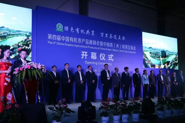 領(lǐng)導(dǎo)們共同為第四屆中國有機(jī)農(nóng)產(chǎn)品展銷會暨中國青(米)磚茶交易會啟動開幕球