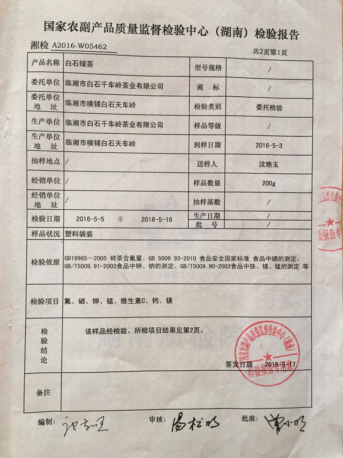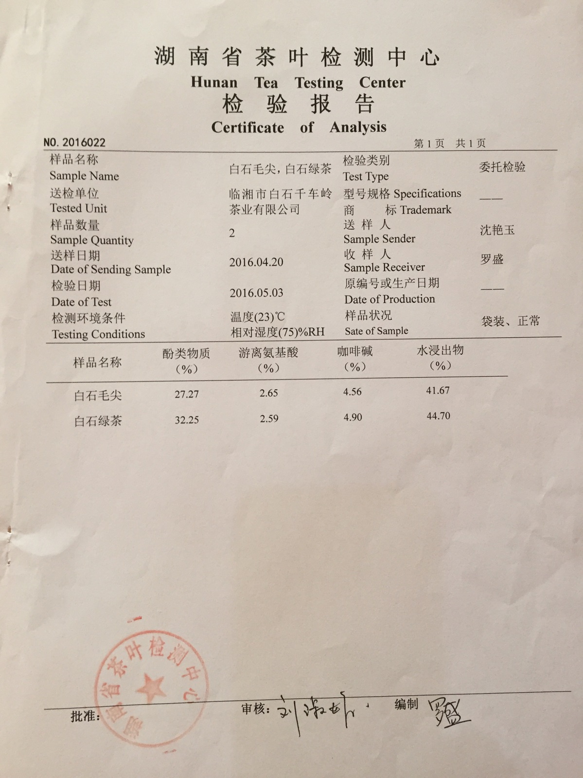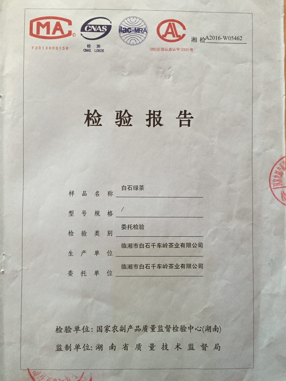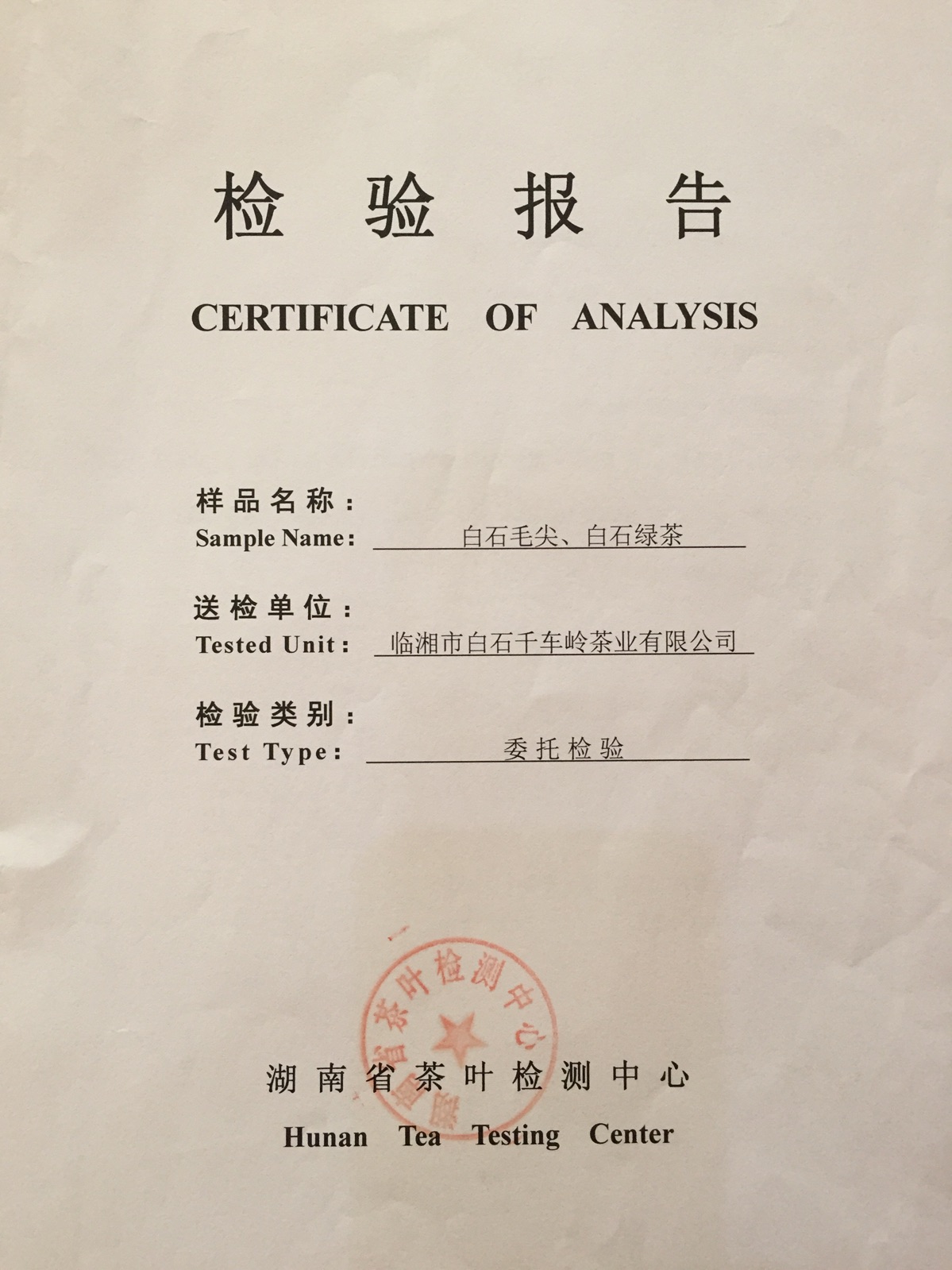 "天車嶺"白石綠茶,經(jīng)權威機構檢驗