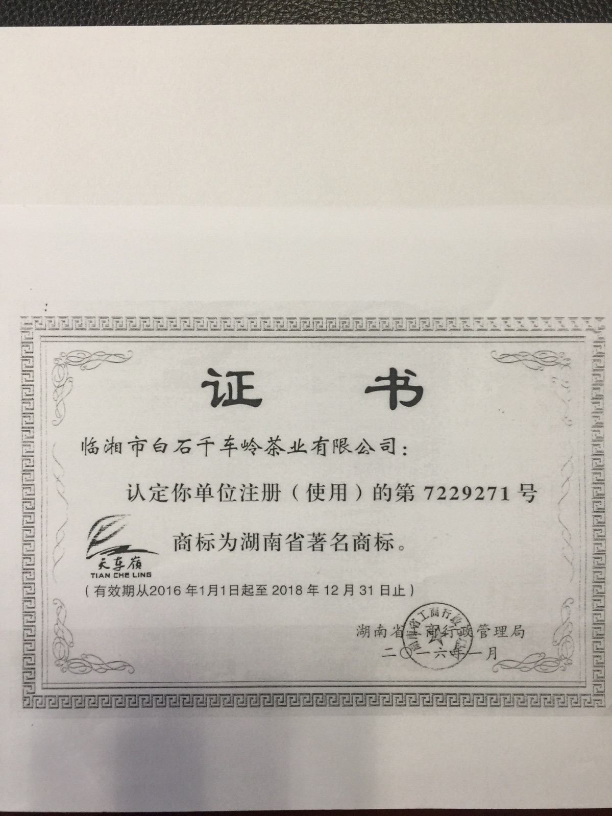 "天車嶺"商標被認定為湖南省著名商標