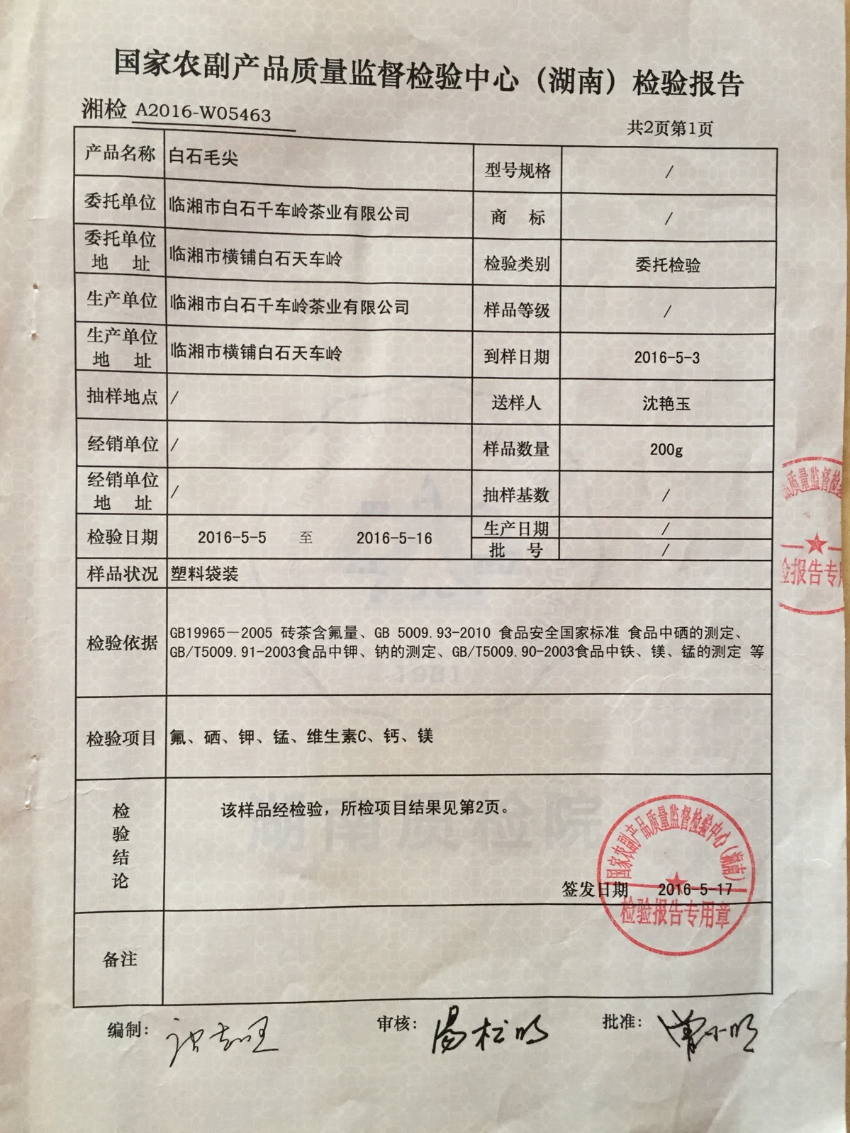 "天車嶺"白石毛尖,通過權威檢驗