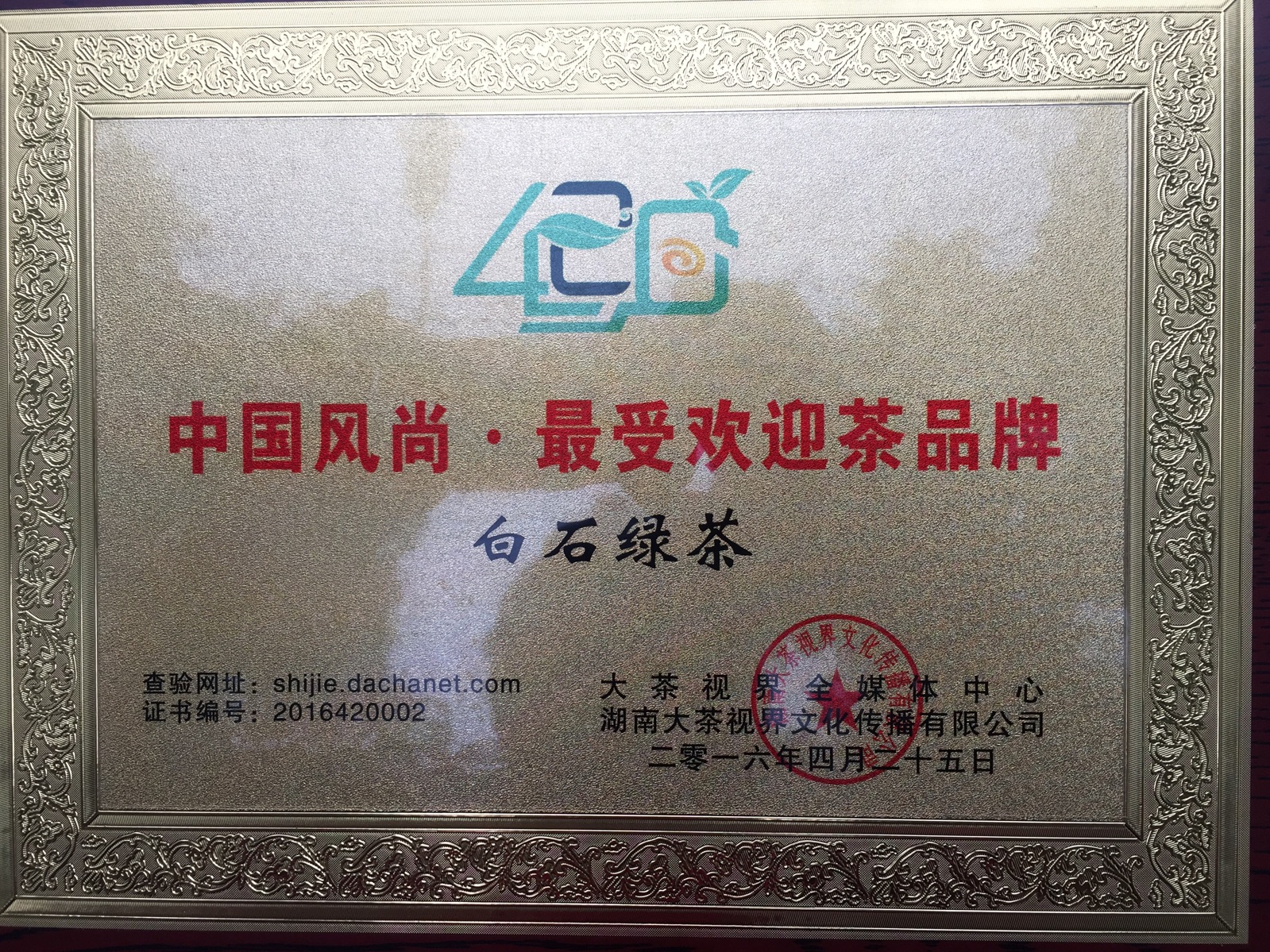 2015國際茶業(yè)大會、2016年在中國有機農(nóng)產(chǎn)品展銷會上均獲"金獎產(chǎn)品"殊榮
