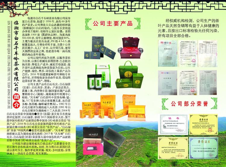 最后,特別感謝關(guān)心、支持白石茶業(yè)的各級各部門領(lǐng)導(dǎo)以及社會各屆朋友!感謝為本次展會付出了辛勤努力的市茶葉協(xié)會、市茶葉辦的領(lǐng)導(dǎo)!感謝主辦參展事務(wù)的農(nóng)業(yè)局的領(lǐng)導(dǎo)和全體工作人員! 同時,希望臨湘茶企以此為起點,同舟共濟、奮發(fā)圖強,使臨湘茶業(yè)發(fā)揚光大、再創(chuàng)輝煌!