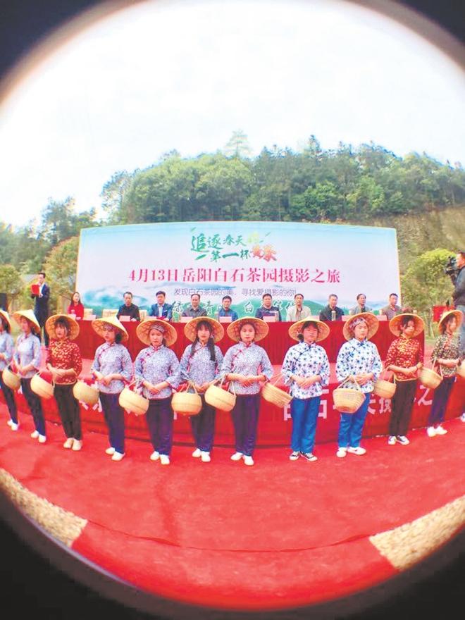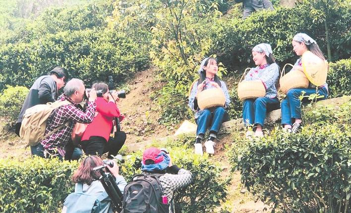 本報訊(記者 劉衍清 劉志恒)藍(lán)天碧云,春風(fēng)和熙。4月13日,來自岳陽市區(qū)以及臨湘市、岳陽縣的100多名中外攝友聚集臨湘市桃林鎮(zhèn)境內(nèi)的天車嶺,開展“白石毛尖——攝影之旅”采風(fēng)活動。市農(nóng)業(yè)農(nóng)村局、市茶產(chǎn)業(yè)辦、市茶葉協(xié)會以及臨湘市、桃林鎮(zhèn)等相關(guān)部門領(lǐng)導(dǎo)參加開拍儀式,現(xiàn)場觀摩的社會各界茶友達(dá)400多人,包括應(yīng)市茶產(chǎn)業(yè)辦邀請前來白石茶業(yè)參觀的外國愛茶人。臨湘市白石茶場毗鄰五尖山的天車嶺,是擁有60多年歷史的老茶場,上世紀(jì)八十年代白石毛尖曾名列湖南八大名 茶。目前1500多畝茶園分布在平均海拔400至500米呈梯田形的高山巖坡上,宛如一條條綠色的緞條環(huán)繞在層巒疊嶂之 中,自然景觀秀美。白石茶業(yè)舉辦這次攝影采風(fēng)活動,旨在向社會各界展示白石毛尖、白石黃茶等系列原生態(tài)茶葉的生長環(huán)境和傳統(tǒng)制作工藝,為做大做強(qiáng)岳陽黃茶產(chǎn)業(yè)增光添彩。參加“白石毛尖——攝影之旅”采風(fēng)活動的100多名攝影師,大都是從事專業(yè)和業(yè)余攝影數(shù)十年、經(jīng)驗豐富的攝影老將,其中僅先后擔(dān)任過岳陽市攝影家協(xié)會副主席以上的國家級攝影家就有10多名,年過七旬的汪培康不僅是參與創(chuàng)建岳陽市攝影家協(xié)會并蟬聯(lián)一、二、三屆會長的老攝影家,又是白石茶場所在地桃林鎮(zhèn)人,這次來家鄉(xiāng)參加活動, 心情十分高興。他端著相機(jī)沿著又長又陡的羊腸小道登上山頭,拍攝美不勝收的茶山風(fēng)光。參加攝影現(xiàn)場抓拍活動的還有愛好攝影的企業(yè)家。中國管理科學(xué)研究院學(xué)術(shù)委員、快購快送網(wǎng)絡(luò)科技創(chuàng)始人、董事長錢前除參加現(xiàn)場抓拍采茶鏡頭外還賦詩二首,詩云:五尖山黛綠,千壑嶺高深。玉女趁朝露,清風(fēng)戀晚春。紅云生紫氣,白石盡黃金……知名畫家、茶人李水生還當(dāng)場揮毫潑墨,創(chuàng)作了《天車嶺上白石茶》的中國畫,贈送白石茶業(yè)。來自哥倫比亞和法國的外國愛茶人杰瑞與愛米麗也應(yīng)市茶產(chǎn)業(yè)辦邀請,興致勃勃地觀摩了“白石毛尖——攝影之旅”采風(fēng)活動,并連連稱贊產(chǎn)于巖石縫中的白石毛尖不愧為純天然、原生態(tài)的岳陽名茶。臨湘市職業(yè)高中的30多位學(xué)生身著采茶服參加了白石茶園采茶體驗活動。