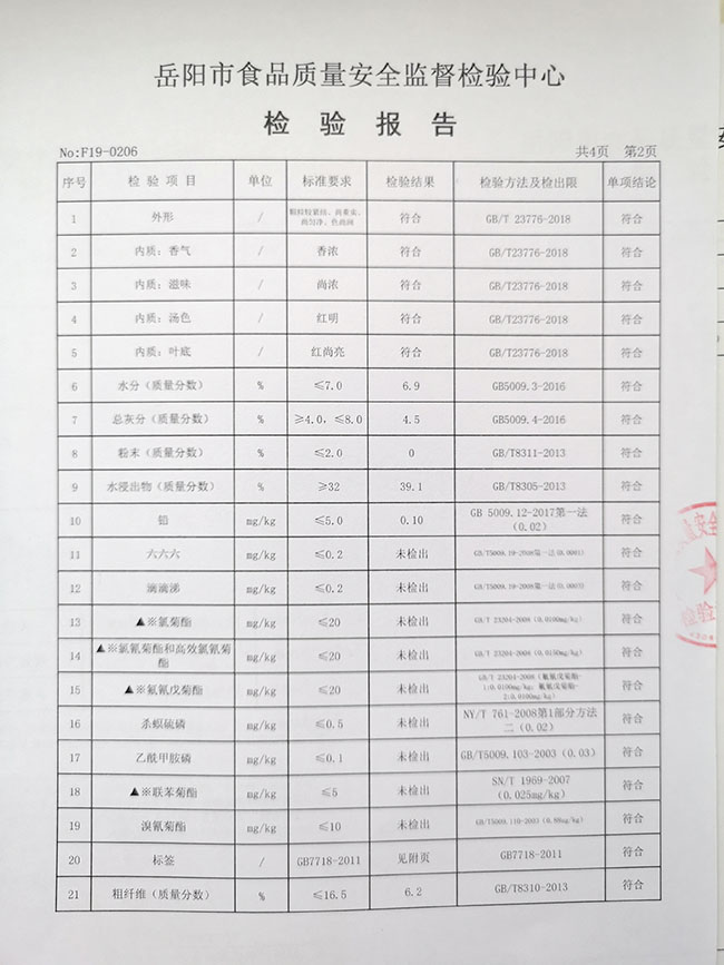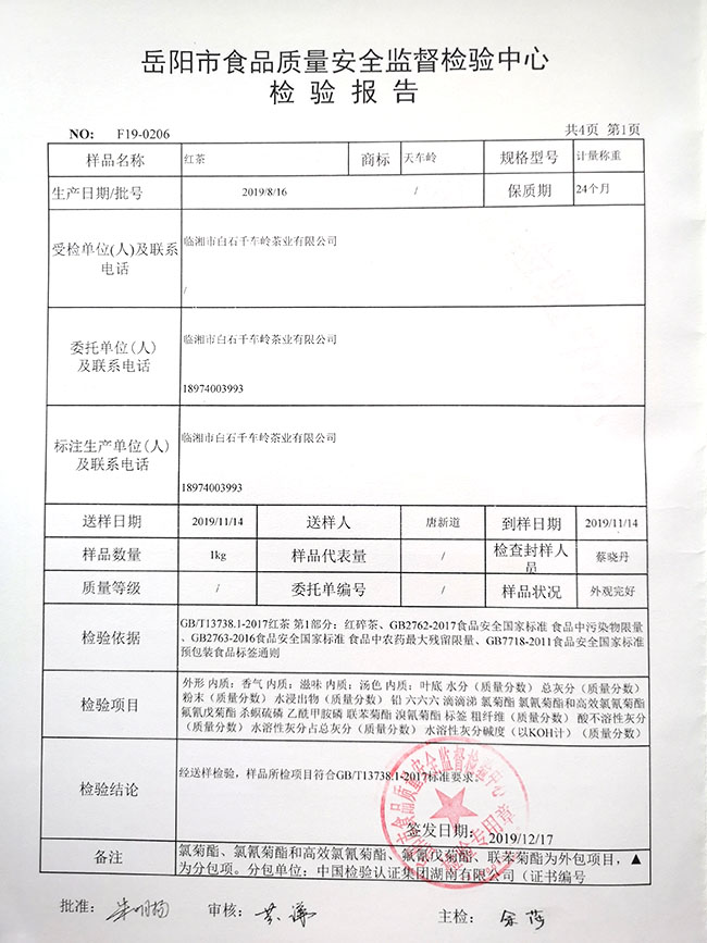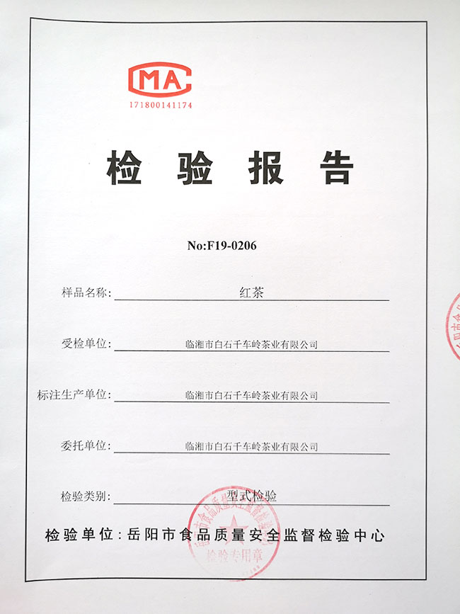 紅茶-產(chǎn)品檢驗報告