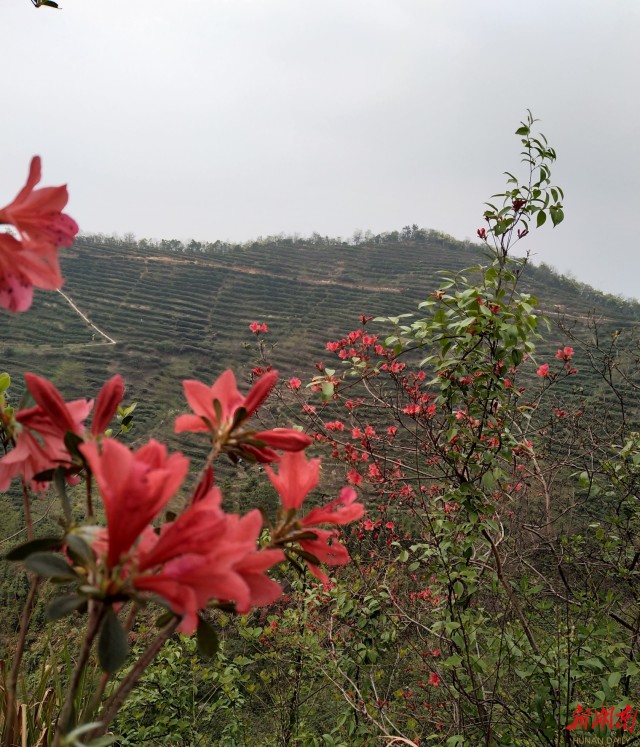 歌聲醉山水,春色滿茶園。一群群蜂蝶戲鬧在油菜花上,彩霞般的映山紅、紅檵木點(diǎn)綴在茶園里,布谷鳥(niǎo)在附近熱烈地啼唱……所有的春色,盡入我懷。