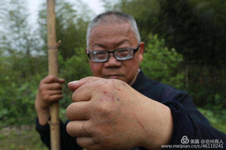 由“白龍馬”到三眼泉井就要繼續(xù)往前方的山坳走。老村長(zhǎng)是山里人,走慣了山路,沿著馬鞍山脊背上的小路輕松地往前走了。沒想到難住了我這位很少走山路腳又受過傷的城里人。“白馬”在整座山脊的起點(diǎn),沿著起點(diǎn)往前走,山脊更陡路更窄,腳的左邊是山壁,右邊則是懸崖峭壁。稍有不慎,后果不堪想象。我突然想起陸定一回憶長(zhǎng)征的《老山界》,記敘的是紅軍翻過老山界時(shí)在絕壁上小心行走的情景,心里不覺緊張起來。好在也是張谷英山里人出身的趙丈田主動(dòng)斷后,一邊在前探路,一邊不時(shí)提醒要注意的險(xiǎn)段。由于山林發(fā)過火災(zāi),能夠攀手的枯干容易折斷,只有帶刺的藤蔓生命力稍強(qiáng),我也顧不了這么多,手抓住刺藤也不輕易松手,手上一下劃出好幾道血痕。遇到太陡太窄的路段只能蹲在地上一步一步向前挪,或身子向山壁側(cè)俯,小心翼翼 “ 爬 ” 過去。只有幾百米的小路,整整捱了40多分鐘,終于走出山脊,見到一片山坡上的茶園,表示已走到了安全地帶。回望走過的山脊,原來就是馬鞍山的馬背,馬背兩邊就是垂直而下的峭壁,但總算有驚無險(xiǎn)。