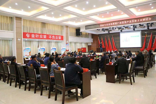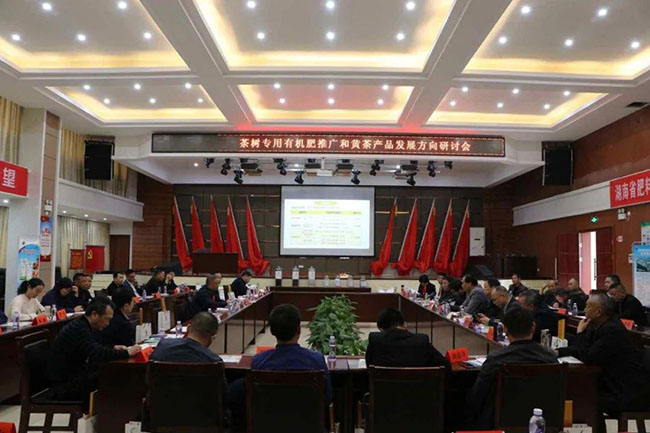 10月28日,岳陽黃茶產(chǎn)品發(fā)展方向研討會(huì)暨茶樹專用有機(jī)肥推廣會(huì)在湖南金葉眾望科技股份有限公司(以下簡稱金葉眾望)召開。