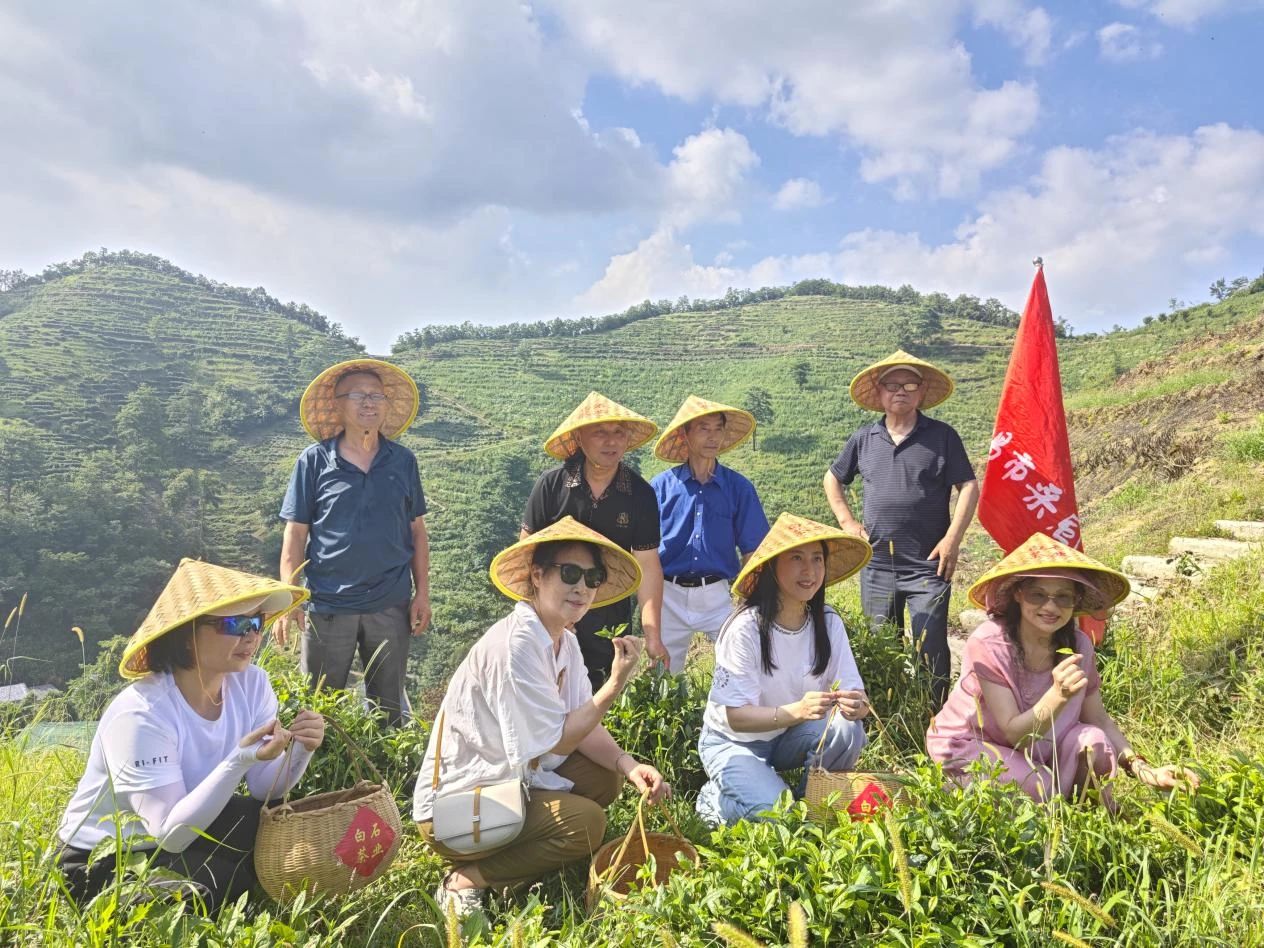 今日陽光明媚,采風(fēng)來到白石茶業(yè)天車嶺。清風(fēng)拂面,田野花兒綻放,宛如一幅美麗的畫卷。心情舒暢。由感賦七律一首《白石茶韻》