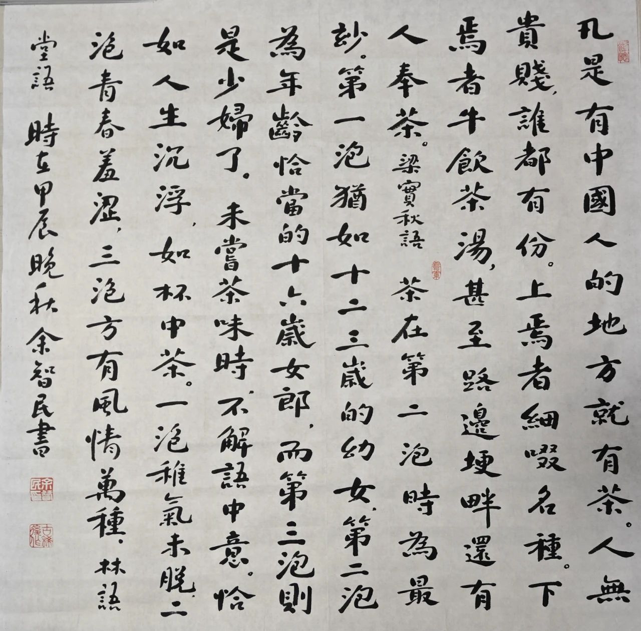 10月30日,臨湘市書(shū)法家協(xié)會(huì)組織創(chuàng)作骨干和黨員代表,開(kāi)展書(shū)法藝術(shù)進(jìn)企業(yè)活動(dòng),茶香墨韻在這里融合,這是書(shū)法藝術(shù)與茶產(chǎn)業(yè)相結(jié)合,推動(dòng)文化與經(jīng)濟(jì)融合發(fā)展的一次積極嘗試,旨在提升“湖南老字號(hào)”天車嶺白石茶的文化內(nèi)涵和品牌價(jià)值。 現(xiàn)將白石茶業(yè)在臨湘市書(shū)法家協(xié)會(huì)書(shū)法“六進(jìn)”志愿服務(wù)活動(dòng)之——“莼湖三人行”書(shū)展作品捐贈(zèng)暨書(shū)法藝術(shù)助推白石茶產(chǎn)業(yè)發(fā)展活動(dòng)現(xiàn)場(chǎng),收藏的24幅珍品分享給讀者,以便讓更多的人在品嘗天車嶺白石茶茶香茶韻的同時(shí),感受到書(shū)法藝術(shù)的無(wú)限魅力。