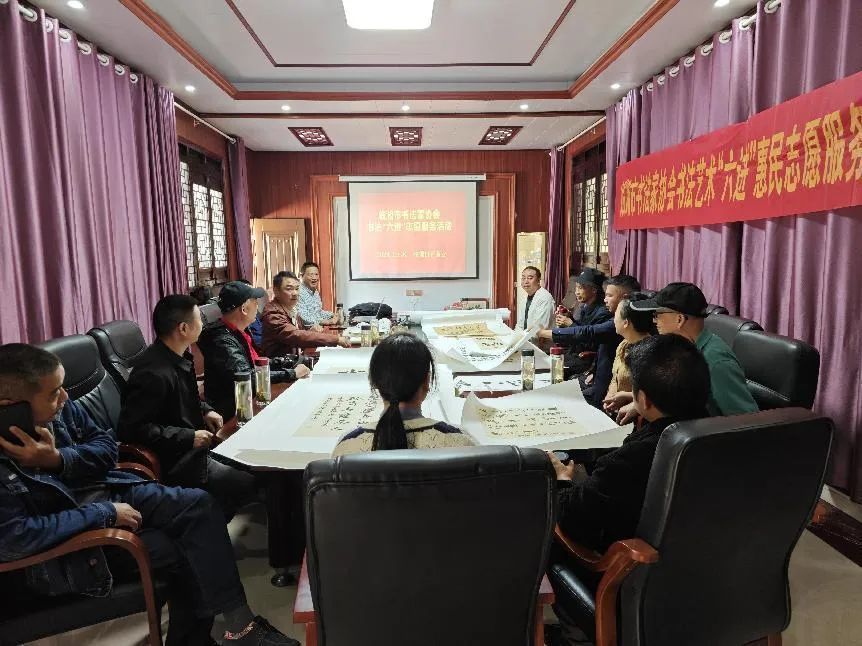 10月30日上午,臨湘市書法家協(xié)會組織創(chuàng)作骨干和黨員代表,開展書法藝術進企業(yè),為白石茶產(chǎn)業(yè)發(fā)展助力加油?;顒佑墒形穆?lián)黨組成員、副主席,書協(xié)黨支部副書記姚湘北主持,在熱烈而溫馨、輕松且愉悅的氣氛中進行。
