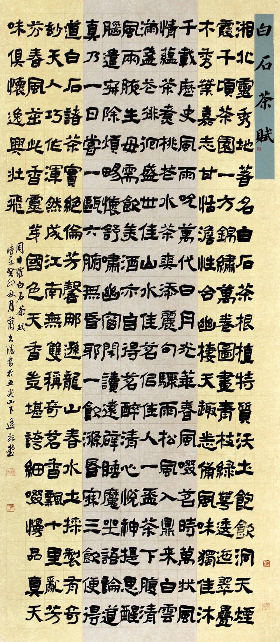 肖久勝先生的《白石茶賦》(文/周甘羅)作品,用藝術(shù)之美詮釋白石茶的生態(tài)之美、人文之美、意境之美、品質(zhì)之美,書法的形制與賦的內(nèi)容相得益彰。