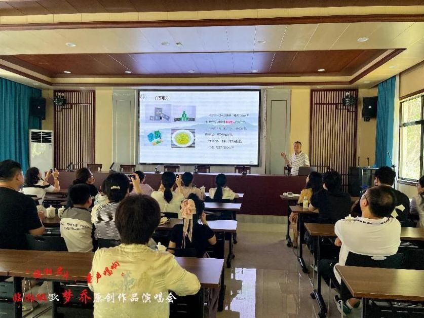 陳奇志老師以其深厚的茶學(xué)功底和豐富的實(shí)踐經(jīng)驗(yàn),從白石茶園的茶情風(fēng)貌、十大獨(dú)特亮點(diǎn),到茶旅融合的創(chuàng)新實(shí)踐等多個(gè)維度,進(jìn)行了全面而深入的講解。臺(tái)上,陳老師的話語(yǔ)如同清泉般流淌,每一個(gè)字都透露出對(duì)岳陽(yáng)茶文化的鐘愛(ài);臺(tái)下,遠(yuǎn)道而來(lái)的客人屏息聆聽(tīng),被這片原生態(tài)茶園的自然之美、悠久文化的深厚底蘊(yùn)、茶類(lèi)品種的豐富多彩以及茶葉品質(zhì)的卓越獨(dú)特深深吸引。