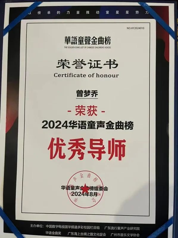 圖為2024年華語(yǔ)童聲金曲榜年度優(yōu)秀導(dǎo)師頒獎(jiǎng)合影