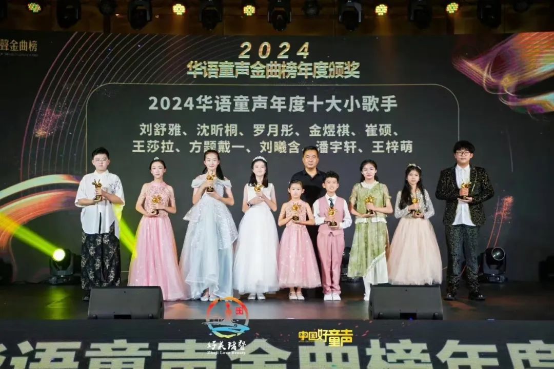 《一片竹林聲聲慢》原創(chuàng)歌手沈昕桐(左2)在2024年華語(yǔ)童聲金曲榜年度十大小歌手頒獎(jiǎng)合影
