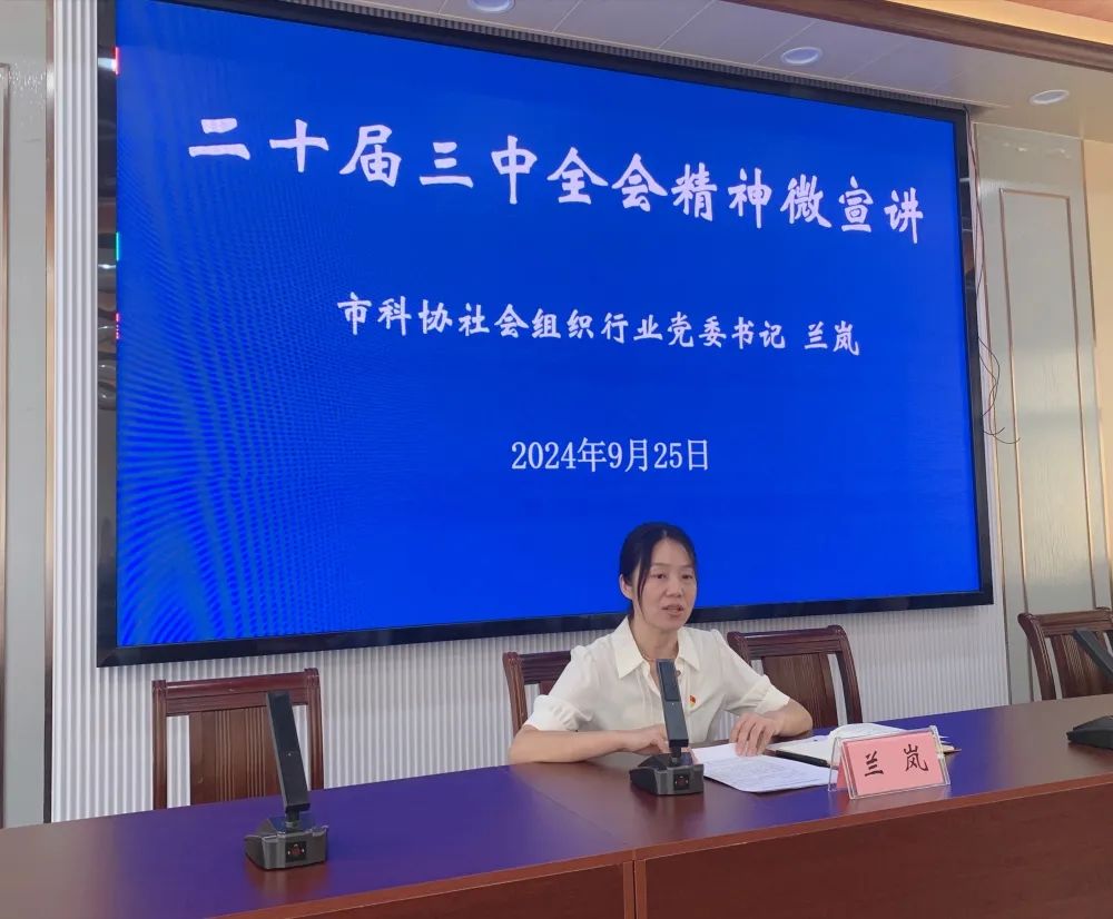 蘭嵐同志以市科協(xié)社會組織行業(yè)黨委書記身份作了“以深化改革推動科技社團(tuán)更高水平發(fā)展”為主題的黨的二十屆三中全會精神微宣講。希望各黨支部在市科協(xié)社會組織行業(yè)黨委的領(lǐng)導(dǎo)下,深刻領(lǐng)會黨的二十屆三中全會的重大意義和總體思路,持續(xù)深化學(xué)習(xí)《決定》關(guān)于社會組織的重要論述,結(jié)合學(xué)會工作實際,錨定全面深化改革和中國式現(xiàn)代化建設(shè),繼續(xù)發(fā)揮學(xué)會組織的特點和優(yōu)勢,奮力推動岳陽社會組織事業(yè)高質(zhì)量發(fā)展,為推進(jìn)中國式現(xiàn)代化湖南岳陽篇章作出新的貢獻(xiàn)。