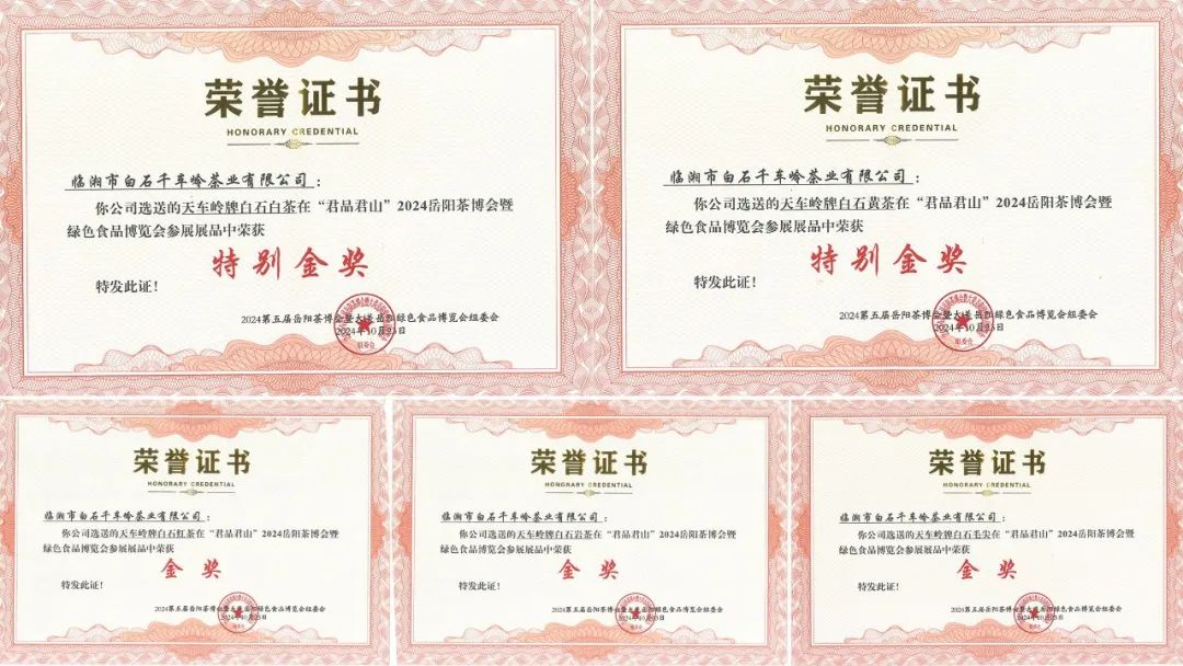 本次評(píng)獎(jiǎng)結(jié)果在今天下午的總結(jié)表彰大會(huì)上進(jìn)行了宣布,臨湘市白石千車嶺茶業(yè)有限公司選送的“天車嶺牌白石巖茶”、“天車嶺牌白石毛尖”、“天車嶺牌白石紅茶”3個(gè)品種榮獲“金獎(jiǎng)”,“天車嶺牌白石黃茶”“天車嶺牌白石白茶”2個(gè)品種榮獲“特別金獎(jiǎng)”。