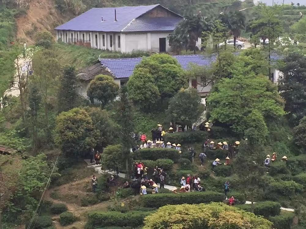 茶園由數(shù)十個(gè)大小山頭組成,全部是一行行的梯地,垂直高度數(shù)十至數(shù)百米,橫向伸延幾千米,形似廣西的“龍脊梯田”。茶山有步行游覽的棧道,拾級(jí)而上,漫山綠意涌入眼簾,縷縷茶香撲面而來(lái),還有粉紅色的桃花、櫻花,紫色的藤蘿,與綠色交相輝映。登山遠(yuǎn)眺,茶園梯田錯(cuò)落有致、一覽無(wú)遺,如詩(shī)如畫的美景,令人心曠神怡。